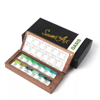 12 Color Oasis Green Tone Solid Watercolor Set with Walnut Box Palette