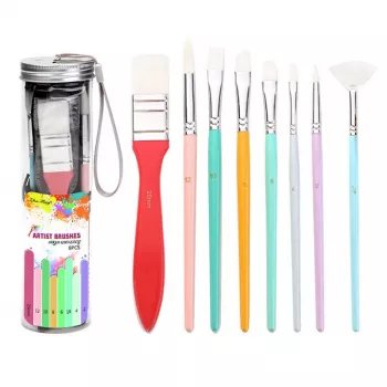 8-Piece Acrylic Paint Brush Set with Nylon Hair and Wooden Handles