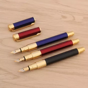 Luxury Red and Gold Metal Fountain Pen with Bend Nib